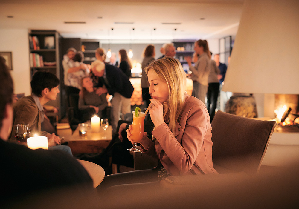 Ob elaborierte Cocktails oder eine kühle Weißweinschorle: An der Kaminbar im Haus am Meer sorgt unser Bartender für den passenden Drink zum Abend. Auch einige Snacks für den kleinen Hunger sind auf unserer Karte zu finden.